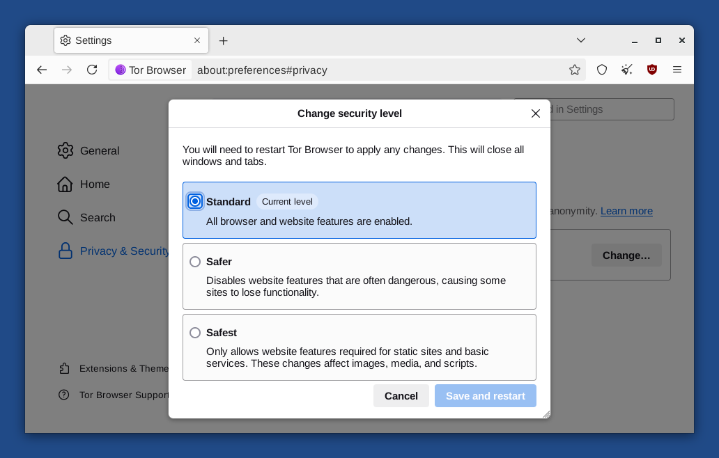 Вы можете изменить уровень безопасности Tor Browser. Это позволит выбрать нужный баланс между безопасностью и удобством использования. Например, можно сменить уровень безопасности на Безопасный и полностью отключить JavaScript.