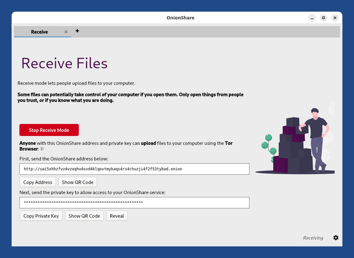 Avec le service Recevoir de OnionShare :
