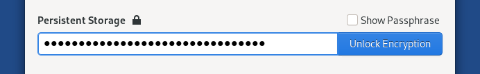 When starting Tails, in the Persistent Storage section of the Welcome Screen, enter your passphrase and click Unlock Encryption.