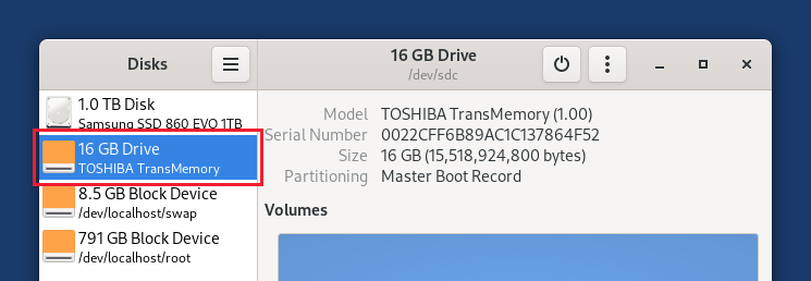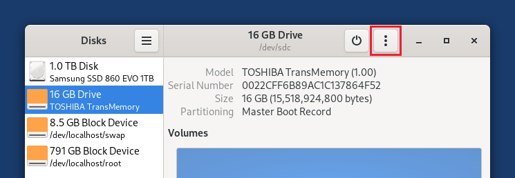 Instal·lar l'intermediari utilitzant Discs de GNOME